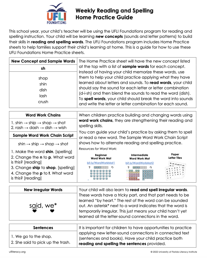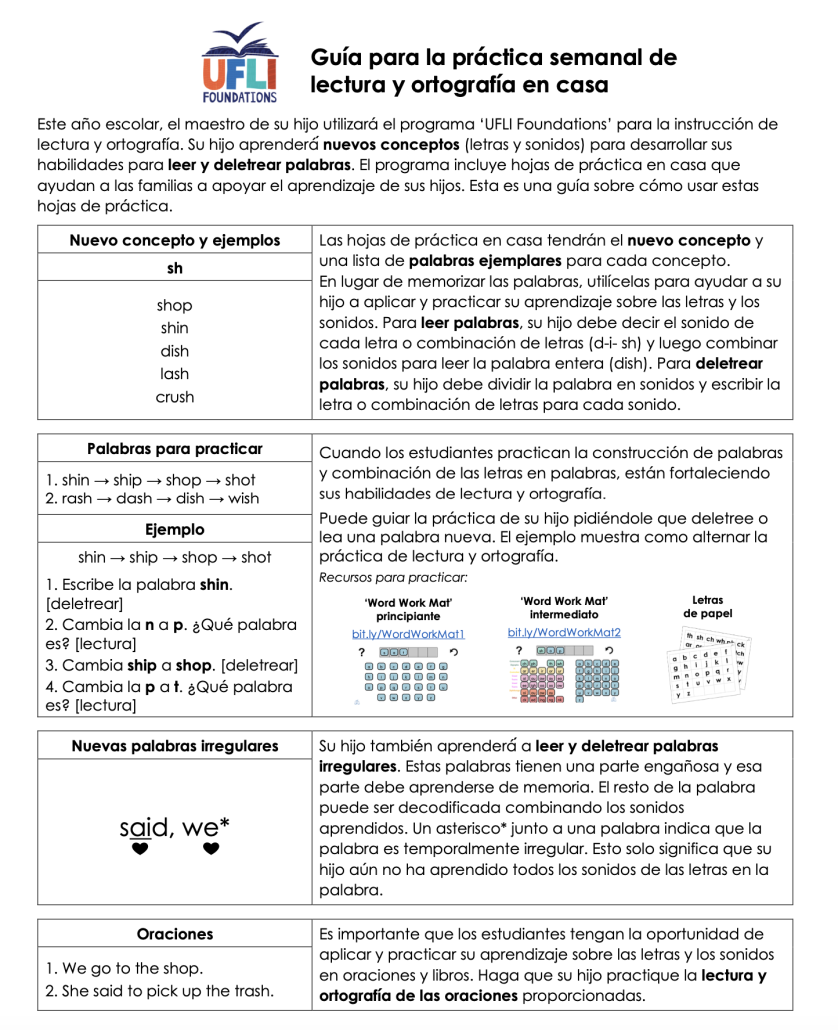 Check out the Home Support Guide for ways to support UFLI lessons at home.